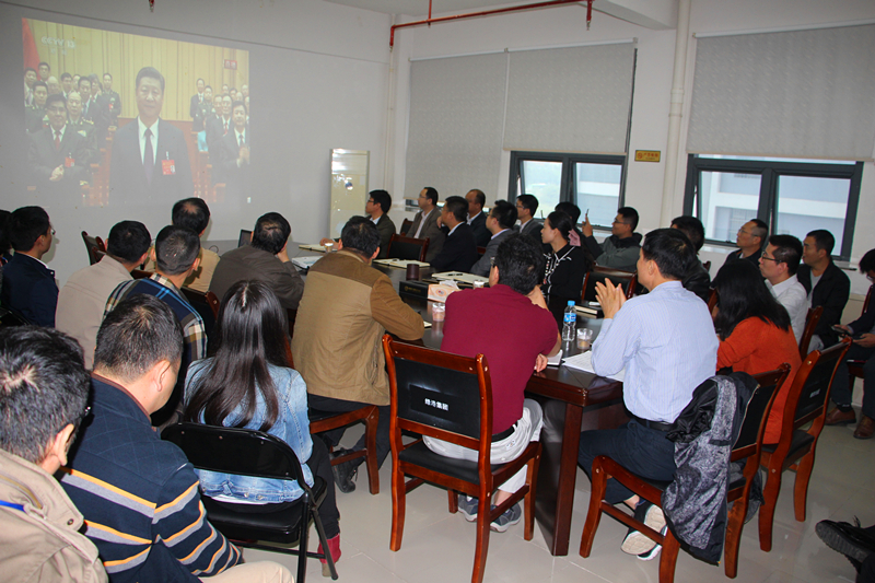 金秋十月,南國綠城花正艷。10月18日,黨的十九大在北京勝利開幕。當(dāng)日上午9時,綠港集團黨委組織集團公司領(lǐng)導(dǎo)班子全體成員、董事長助理、總經(jīng)理助理,各部門、各子公司負(fù)責(zé)人及公司全體黨員,在麗匯大廈415會議室集中收看中國共產(chǎn)黨第十九次全國代表大會開幕會直播盛況。全體與會人員懷著無比激動的心情,聚精會神,靜靜聆聽,認(rèn)真記錄,不時爆發(fā)出熱烈的掌聲!在長達(dá)三個半小時的收看過程中,整個會場始終保持莊嚴(yán)、肅穆、緊張、熱烈的良好氛圍。