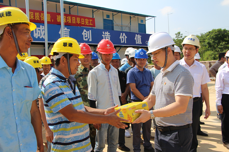 綠港集團(tuán)黨委書(shū)記、董事長(zhǎng)、總經(jīng)理龔國(guó)強(qiáng)給項(xiàng)目一線人員送清涼