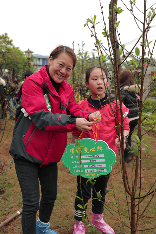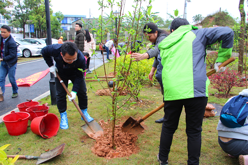當(dāng)天,綠港集團還舉行了植樹護綠活動。在細(xì)雨紛飛中,家長和孩子們一起動手,分工協(xié)作。大家栽得認(rèn)真,干得賣力,揮鍬鏟土、挖坑、栽樹、蓋土、澆水,各個環(huán)節(jié)銜接有序,配合默契。整個植樹活動現(xiàn)場熱火朝天,歡聲笑語不絕于耳。經(jīng)過一個多小時的揮汗奮戰(zhàn),上百棵小樹苗整齊的“站”在了綠港·國際中心桃樹林中。放眼望去,樹苗迎風(fēng)挺立、搖曳生姿,大家看著這一片自己親手種下的樹苗,無不露出幸福的笑容,紛紛與小樹苗合影。綠港集團下屬榮鑫公司副總經(jīng)理唐欽月表示:“植樹造林是一項利于當(dāng)代、造福子孫的偉大工程。綠港集團成立五年來,每年都積極組織員工開展義務(wù)植樹造林活動。今天我們帶上孩子一起參加義務(wù)植樹活動,不僅增強了職工們生態(tài)環(huán)境保護的責(zé)任感,也給孩子們樹立了關(guān)心、愛護以及主動參與家園建設(shè)的意識和榜樣?!?nbsp;