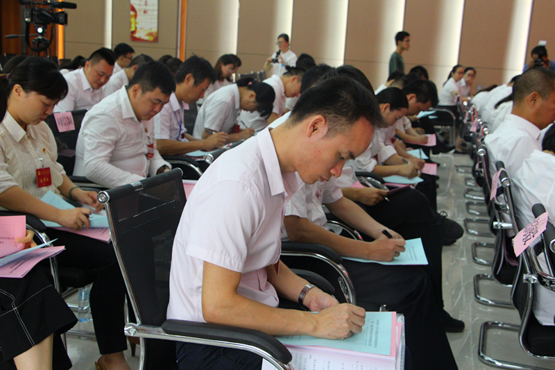 與會(huì)黨員認(rèn)真填寫選票