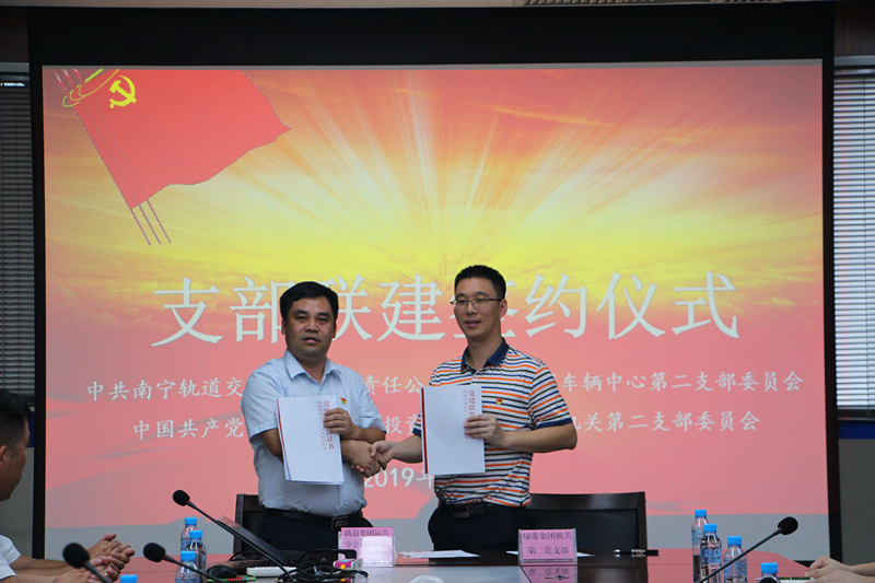 最后,南寧軌道交通集團(tuán)有限公司運(yùn)營(yíng)分公司車輛中心第二黨支部與綠港集團(tuán)機(jī)關(guān)二支部進(jìn)行黨建聯(lián)盟簽約儀式,并授予了“南寧地鐵黨建聯(lián)盟”牌匾。通過(guò)黨組織的結(jié)對(duì)共建,結(jié)對(duì)雙方將努力實(shí)現(xiàn)“資源共享、優(yōu)勢(shì)互補(bǔ)、互利共贏”的目標(biāo),充分發(fā)揮同盟的綜合效應(yīng),豐富基層黨建內(nèi)涵,促進(jìn)支部黨建工作水平再上新臺(tái)階。