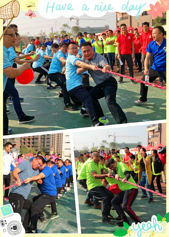 首先開始的是拔河比賽,只聽裁判員的一聲哨響,現(xiàn)場馬上進(jìn)入到緊張的比賽環(huán)節(jié)。廖勇副主任與集團(tuán)公司領(lǐng)導(dǎo)一道,一馬當(dāng)先打頭陣,對壘科巨公司隊(duì)。只見這邊運(yùn)動(dòng)員們個(gè)個(gè)咬緊牙關(guān)、目光如炬,臉憋得通紅、手拉得充血,比賽的戰(zhàn)況緊緊地牽動(dòng)著觀眾們的心,繩子一時(shí)往左一點(diǎn),一時(shí)往右一點(diǎn),在緊張的氛圍中大家聲嘶力竭地給運(yùn)動(dòng)員們加油鼓勵(lì),現(xiàn)場氣氛十分高漲!經(jīng)過幾輪的比拼,萬方公司隊(duì)獲得拔河比賽項(xiàng)目冠軍、科巨公司隊(duì)獲得亞軍、榮鑫公司隊(duì)獲得季軍。