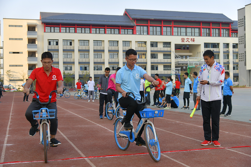 下午,雖然艷陽高照,但是卻絲毫沒有影響參賽隊(duì)員們的熱情,賽場更是熱火朝天,加油聲此起彼伏,原來,這是最受職工歡迎和參與率最高的比賽環(huán)節(jié)——趣味類運(yùn)動(dòng)競技。今年的趣味競技設(shè)置了龜兔賽跑、快樂運(yùn)球、同舟共濟(jì)、滾鐵環(huán)、激情袋鼠、定點(diǎn)投籃和慢騎自行車等項(xiàng)目,既有團(tuán)體比賽,又有個(gè)人積分賽,大家結(jié)合自身的實(shí)際和特長選報(bào)項(xiàng)目,全身心投入比賽。為了取得好成績,午飯后,很多運(yùn)動(dòng)員放棄了休息,都在操場上反復(fù)練習(xí),不斷總結(jié)經(jīng)驗(yàn)。