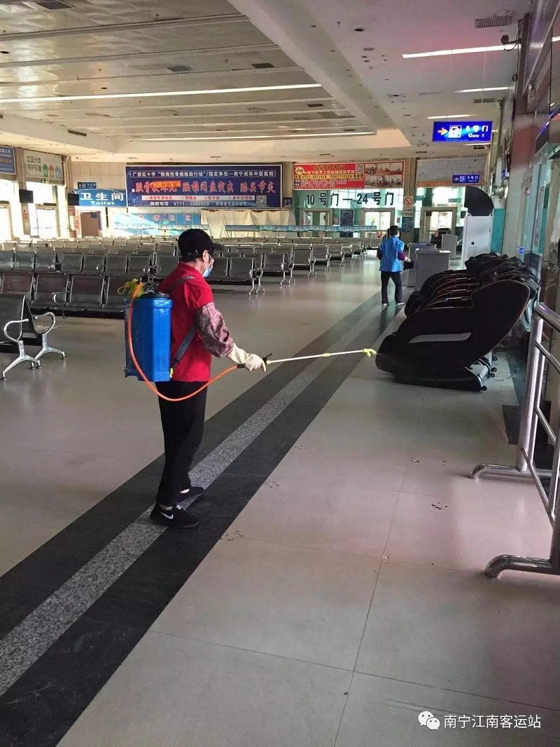 江南客運站對站內座椅等相關設施進行消殺。 (江南客運站供圖)
