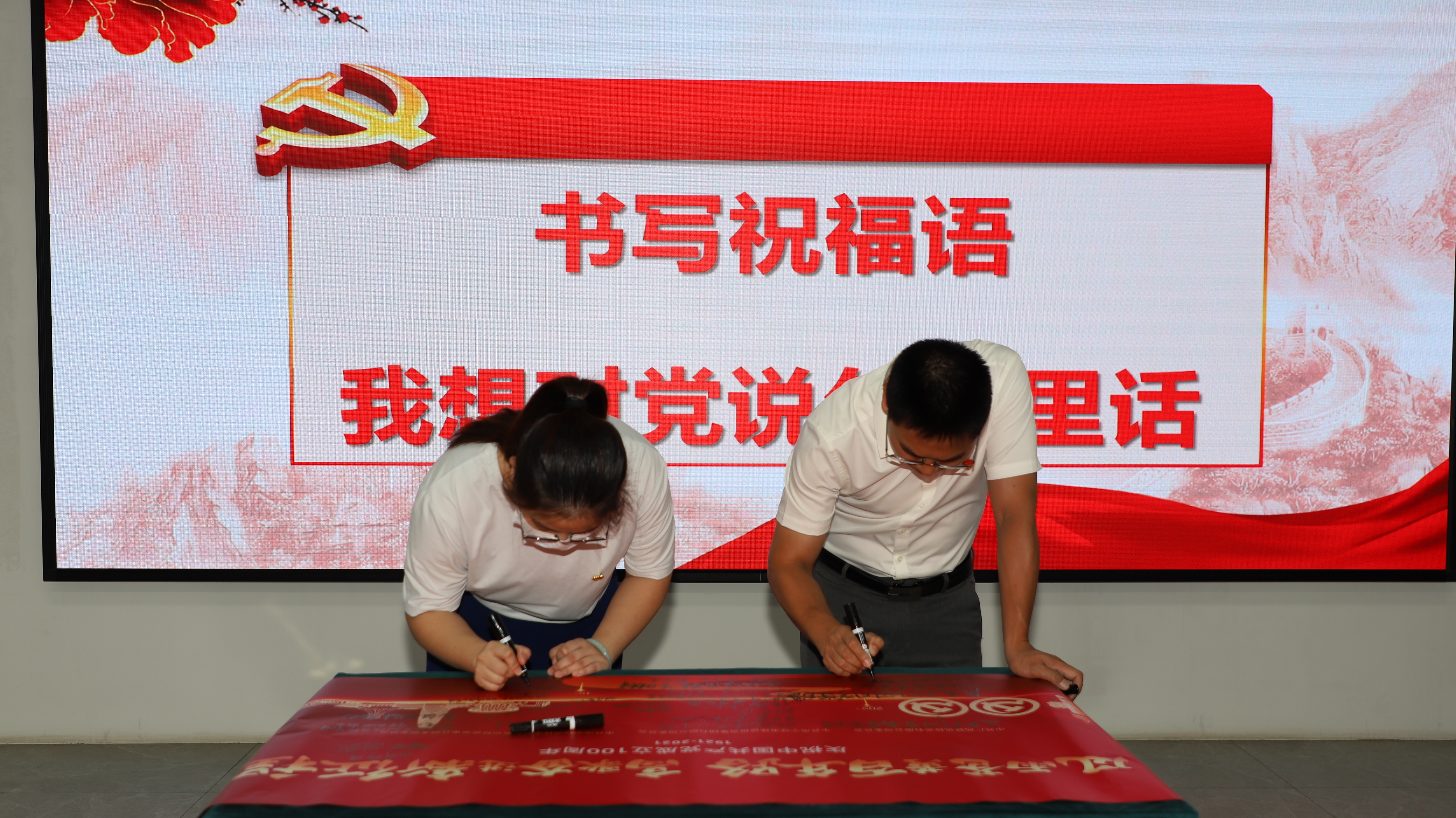 黨員們依次上臺(tái)書(shū)寫(xiě)對(duì)黨的祝福