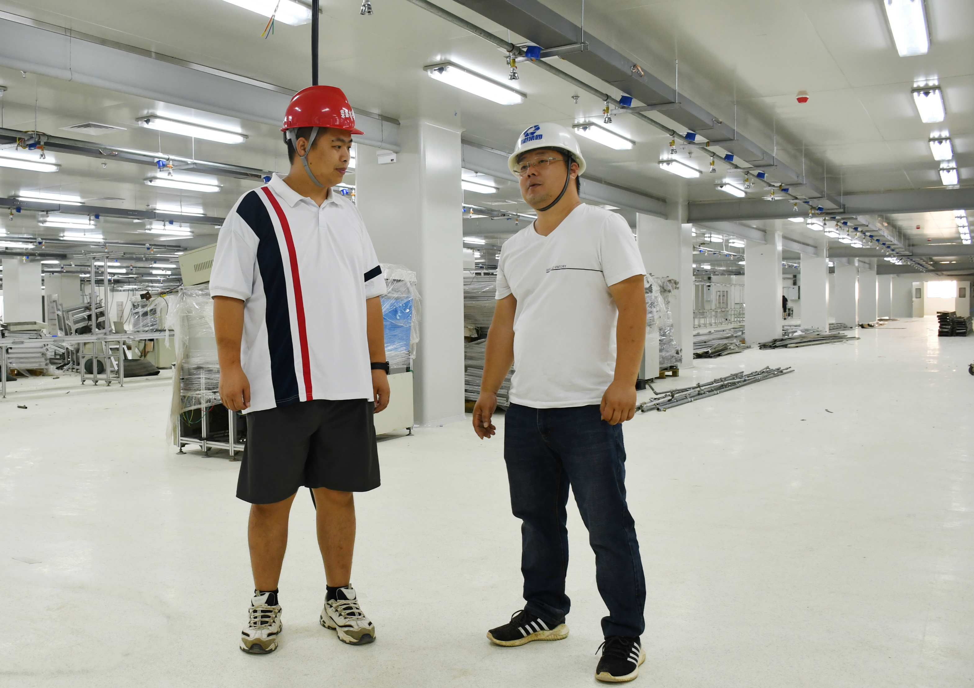 瑞聲科技(南寧)廠房裝修工程、瑞聲科技(南寧)廠房裝修二期工程、中恒2#、3#廠房裝修和安裝工程(音卓項目)、瑞聲科技(南寧)廠房裝修三期工程,作為市委、市政府、經(jīng)開區(qū)重點工程、督辦項目,也是綠港集團和榮鑫公司每年的攻堅項目,項目工期緊,質(zhì)量要求高標準。特別在2018年瑞聲一期項目時,經(jīng)開區(qū)管委會在第一時間發(fā)布項目攻堅方案,要求務必在2018年6月25日前完成主廠房一、二層施工任務并交瑞聲公司進行生產(chǎn)設備安裝,7月25日前完成除展廳外的施工任務,裝修改造面積超過6萬平方米。唐羅源臨危受命,迅速組織項目團隊,積極與經(jīng)開區(qū)項目推進工作組共同研究制定了詳細的施工作業(yè)計劃,明確了從圖紙?zhí)峁?、地面鋼纖維砼地板施工到各層各專業(yè)安裝、彩鋼板進場、甲供進場、地面鋪裝、設備房安裝、調(diào)試等各項工作的主要節(jié)點計劃。