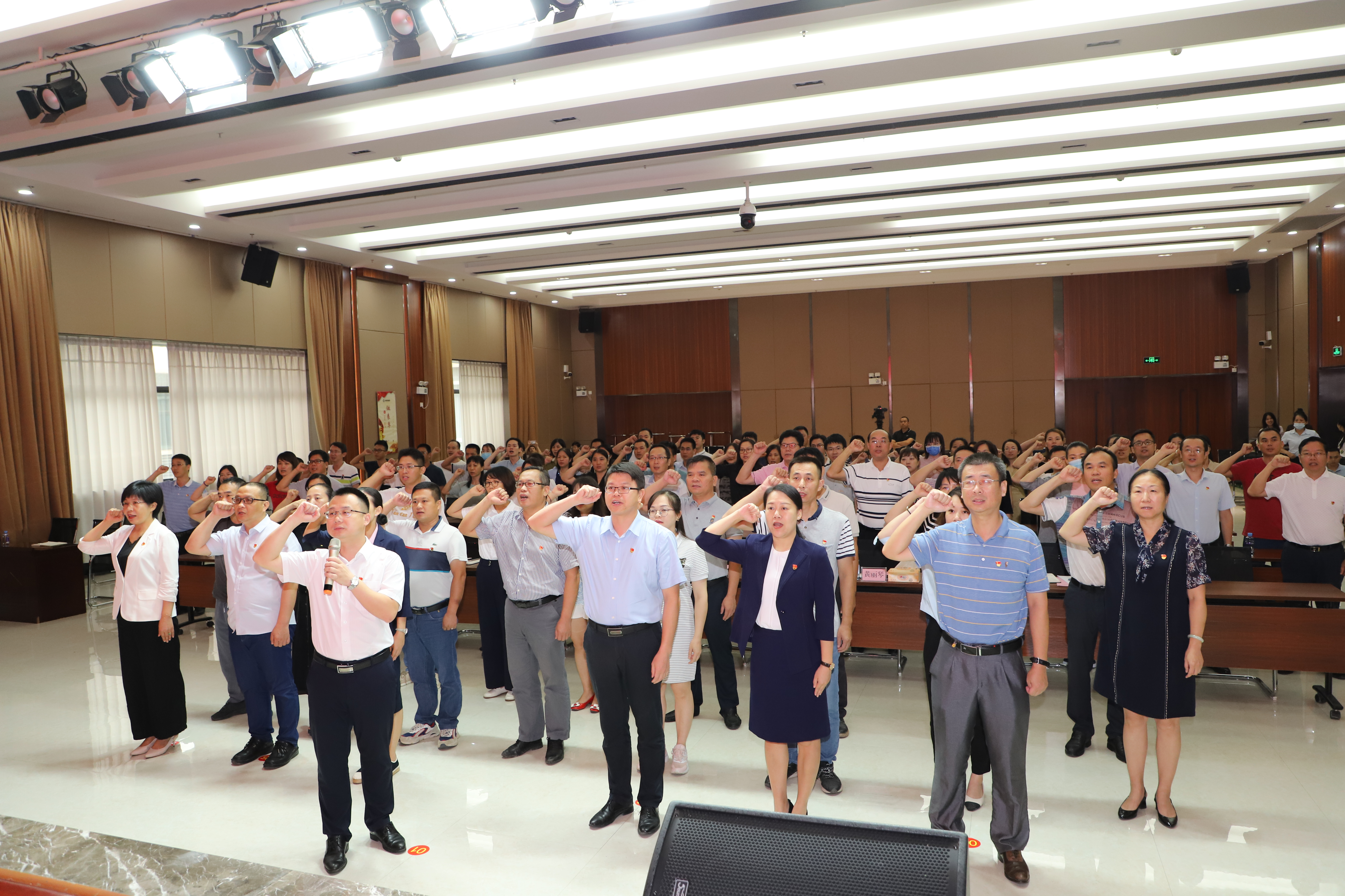 “我志愿加入中國共產(chǎn)黨,擁護(hù)黨的綱領(lǐng),遵守黨的章程,履行黨員義務(wù)……”迎著黨旗、舉起右拳,在集團黨委書記、董事長龔國強的帶領(lǐng)下,綠港集團7名新入黨黨員莊嚴(yán)地宣讀了入黨誓詞、98名老黨員同志重溫了入黨誓詞,大家在入黨誓詞中回顧初心,銘記宗旨,接受了一次心靈的洗禮。