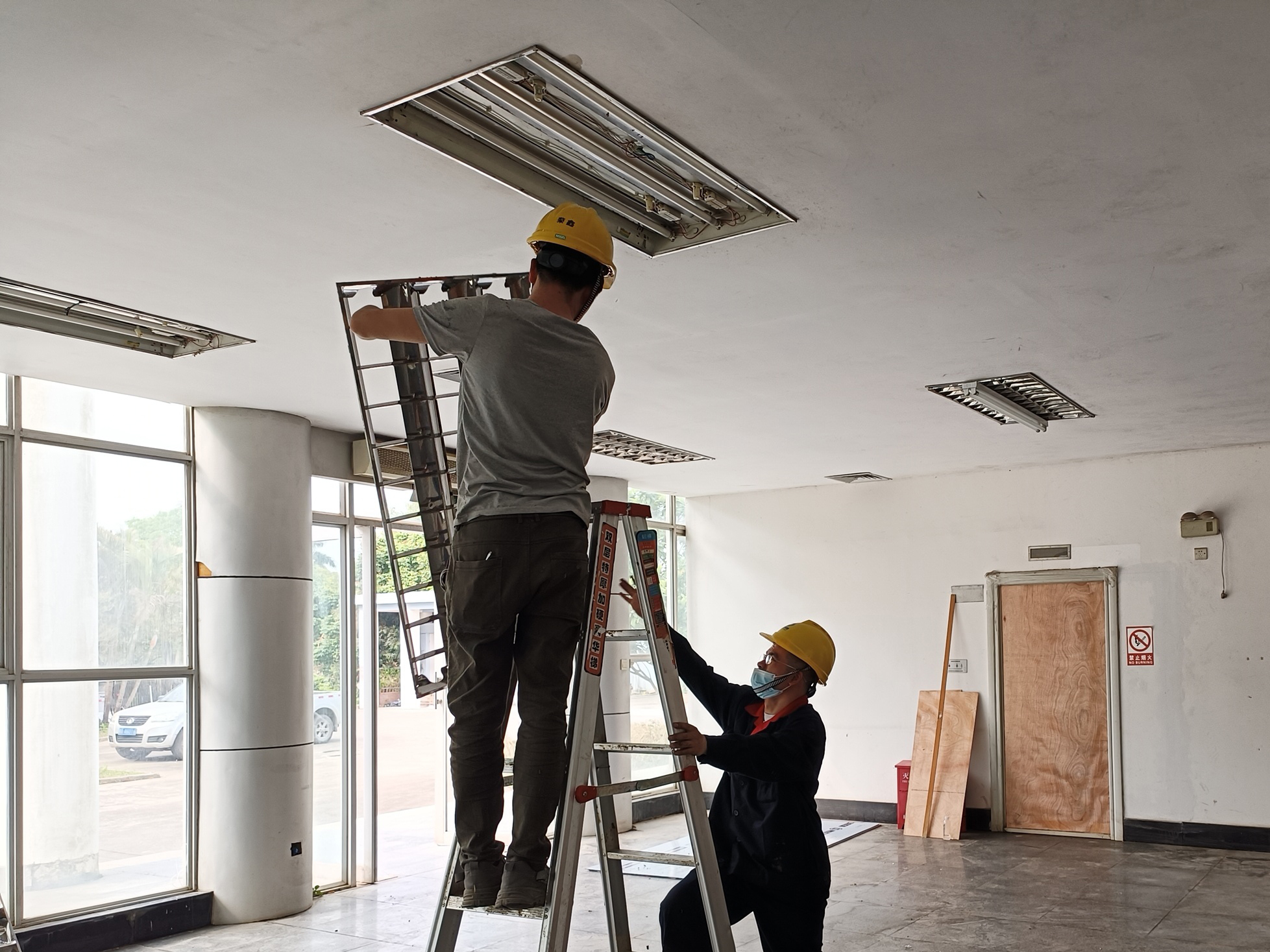 由于年久失修,部分房門已經(jīng)被嚴重侵蝕,想要拆除并非易事,施工人員每3人一組,分工合作,合力拆除,并對墻體進行修復(fù),重新安裝大門。